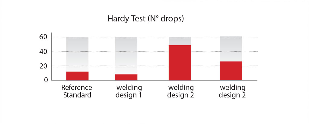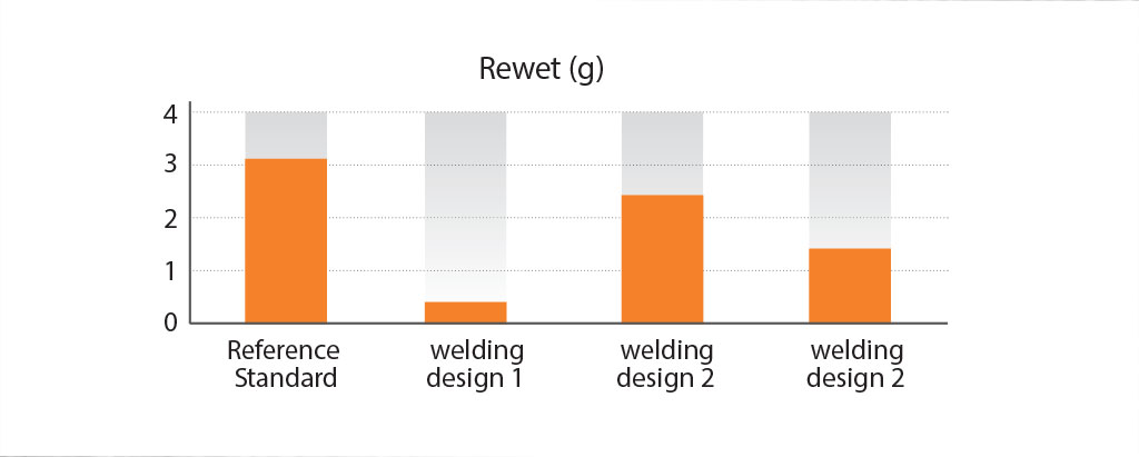 Comparative tests (methodics defined with partner Fater) vs. traditional technologies show that the GLUELESS™ solution offers equivalent results in terms of strength of the side seal, confirming that the welding strength is higher than the breaking point of the ear itself.