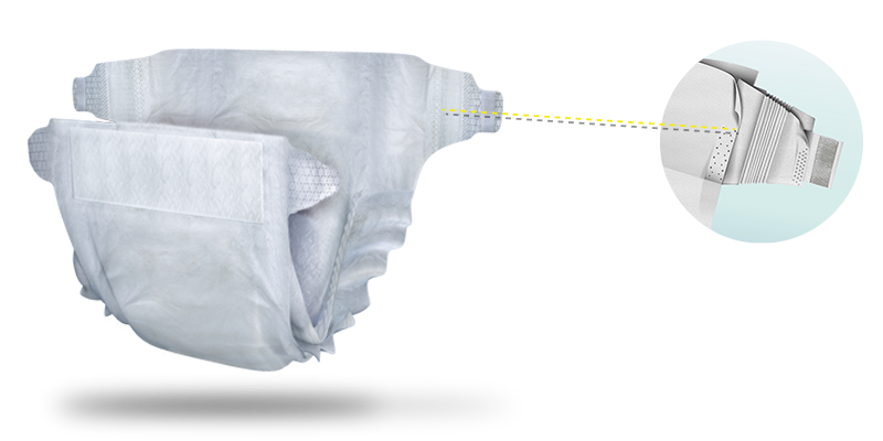 The GLUELESS™ solution, with Cuff Elastics mechanically fixed between two layers of nonwoven in intermittent mode, allows: