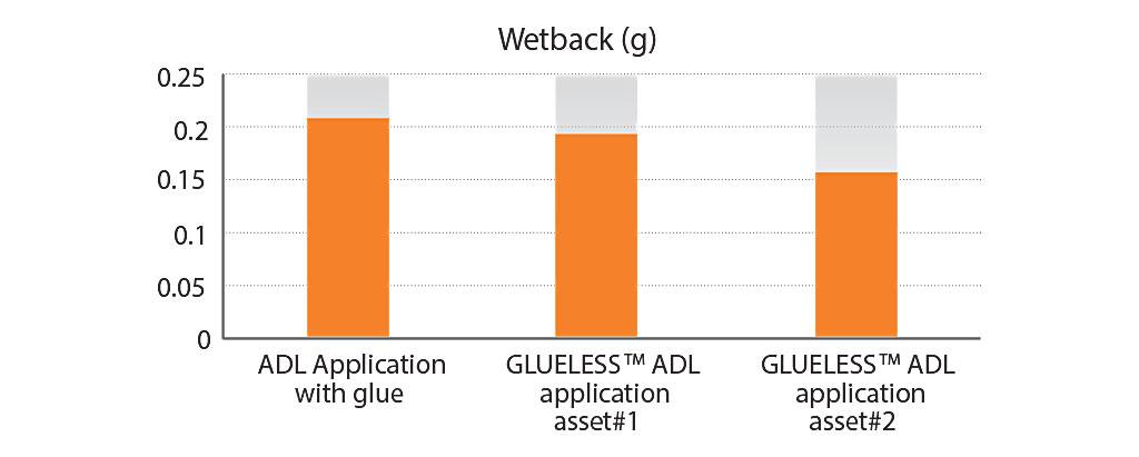 GLUELESS™ ADL application on the topsheet, welded with Ultrasonic System, allows:
